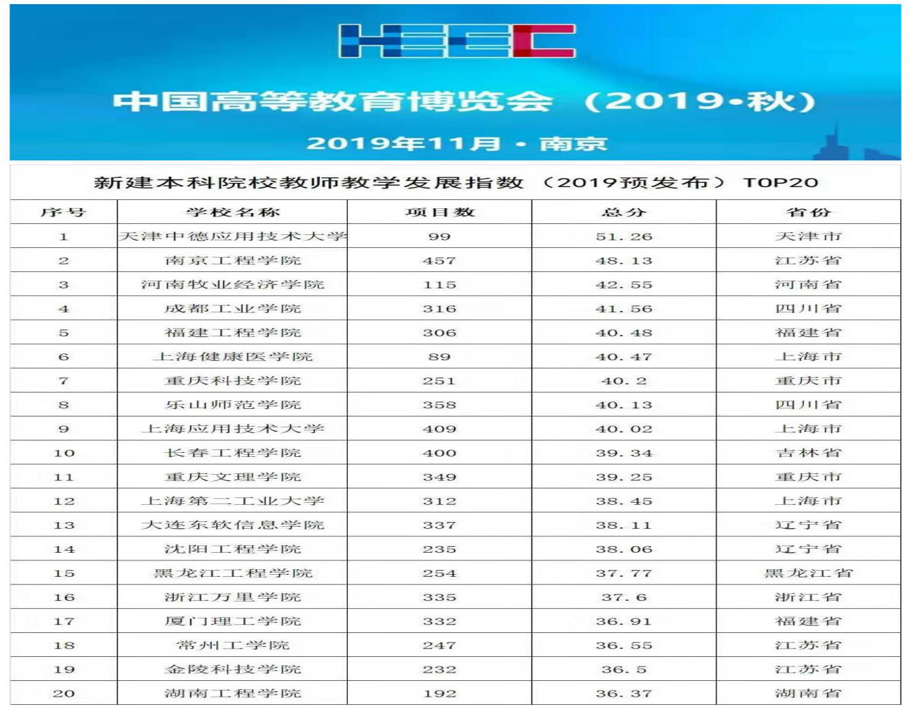 2019年11月1日,由中国高等教育学会主办的中国高等教育博览会(2019.秋)在南京举行,博览会上首次现场发布教师教学发展指数,河南牧业经济学院在全国639所新建本科院校中脱颖而出,位列全国第三。
