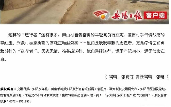 好样的,漯河职业技术学院学生党员们,你们在基层,在普通群众中,在疫情防控实际行动中,不惧疫魔,努力践行初心使命,为你们点赞,为你们喝彩!(董建伟 谢海良 晁松杰)