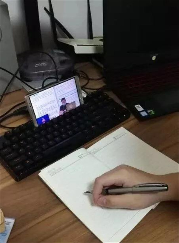 伴随着激昂壮阔的《中华人民共和国国歌》旋律,直播间和全国各地的师生起立同唱国歌,在这特殊时期,我们以特殊方式共抗疫情,共克时艰。