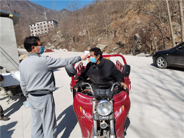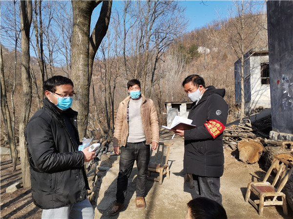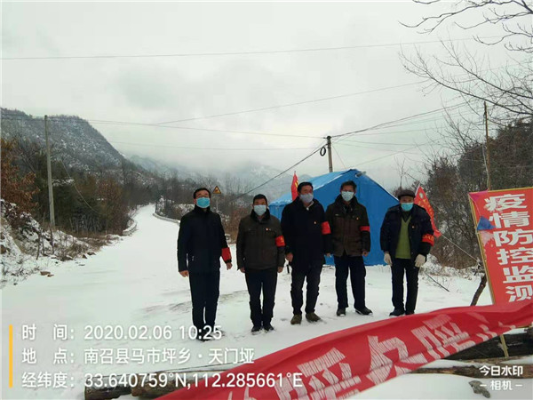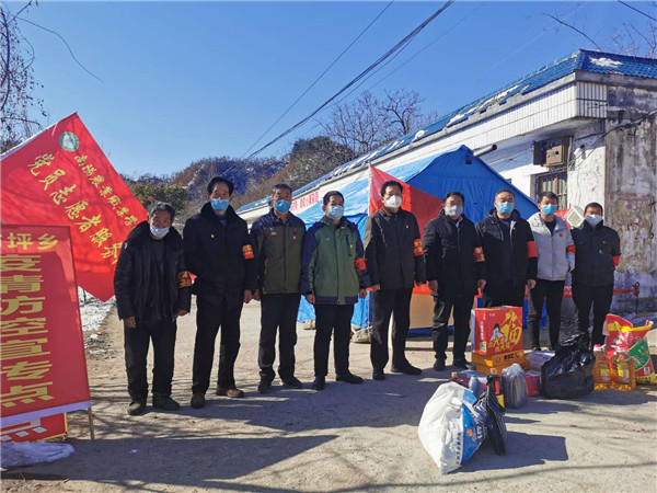 为扎实做好新型冠状病毒感染的肺炎疫情防控工作,按照市委统一部署,学院党委积极响应,我院驻南召县马市坪乡南坪村第一书记李伟、驻村工作队队长赵胜和、队员王国强和石战不顾高山积雪路面打滑的风险,于2020年1月28日风尘仆仆到达驻村扶贫岗位,并迅速在南坪村村口设立疫情联防联控检查关口,耐心宣传疫情防控政策,询问、检查、登记入村人员,担当起守望一方平安的重担。