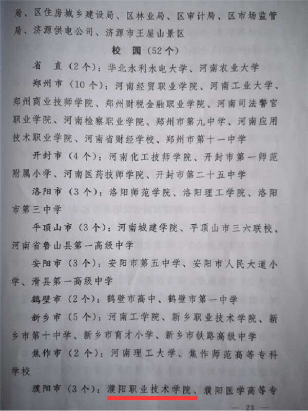 近日,中共河南省委、河南省人民政府印发《关于表彰2017—2019年度河南省文明城市文明村镇文明单位的决定》(豫文〔2020〕43号),濮阳职业技术学院被授予“河南省文明校园标兵”称号。