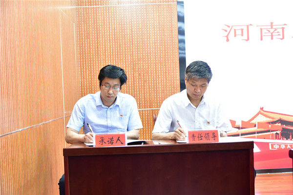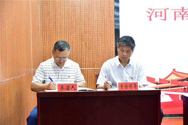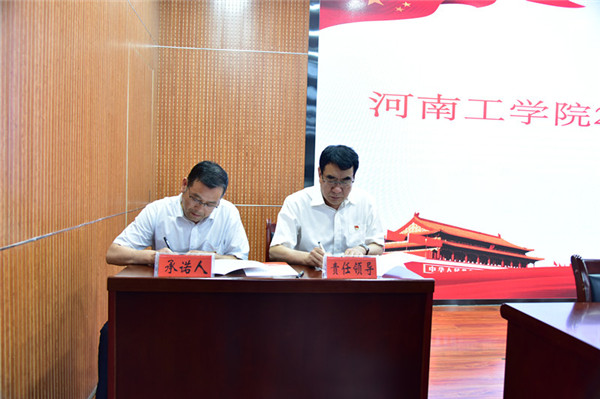 会上,相关部门、教学院部代表向分管和联系的校领导签订了2020年党风廉政建设目标责任书。(河南工学院供稿)