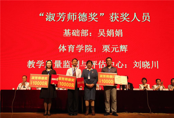 (董事长王淑芳女士为2017年“淑芳师德奖”获得者颁奖)