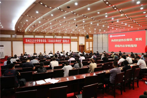 张慧娴部长在致辞中说,近年来,郑州升达经贸管理学院全面贯彻党的教育方针,坚持社会主义办学方向,大力培育和践行社会主义核心价值观,秉持“勤俭朴实、自力更生”的升达校训、“爱国爱校、宁静好学、礼让整洁”的升达精神,积极拓展文明创建工作的新领域,扎实开展了一系列卓有成效的文明创建活动,走出了一条具有特色、符合实际的精神文明创建之路。学校育人环境更加优美,办学实力和办学质量稳步提高,受到了社会各界的广泛赞誉。这次获得“河南省文明校园”荣誉称号,正是升达学院扎实工作、开拓创新的结果,凝结了全校师生员工的心血和汗水。今后,希望升达学院能以荣获“河南省文明校园”为新的起点,重视巩固提高,注重创新拓展,打造特色亮点,推动创建不松劲,深化创建不停步,保持荣誉不懈怠,努力成为传播精神文明的重要窗口、践行核心价值观的重要阵地、培养新时代优秀人才的摇篮,为郑州市的国家中心城市建设做出新的更大的贡献。