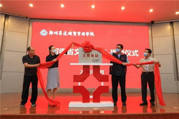 揭牌仪式上,孙现民主任宣读了河南省委、省政府《关于表彰2017-2019年度河南省文明城市文明村镇文明单位的决定》。张慧娴部长、孙现民主任和该校王新奇执行董事、张德伟书记共同为该校“河南省文明校园”揭牌。