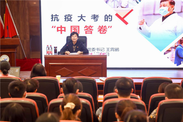 王书记的思政课分为三方面内容:中国抗疫的艰辛历程、抗疫大考的中国答卷、弘扬伟大的抗疫精神。课上全面讲授了我国在新冠肺炎疫情中重要举措和取得的重要成果;展示出我国讲信义、重情义、扬正义、守道义的大国形象;让学生们再次感受到中国共产党高瞻远瞩、坚强有力的正确领导,体会到中国特色社会主义集中力量办大事的制度优势,震撼于中国人民上下同欲、无往不胜的执行力、凝聚力和战斗力。