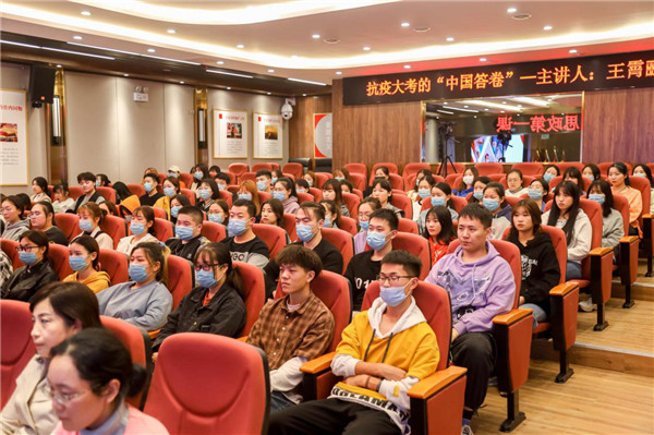 10月21日,一堂题为《抗疫大考的“中国答卷”》思政课在郑州财税金融职业学院敏行楼113教室精彩开讲。主讲嘉宾是学院党委书记王霄鹂。王书记从宏观与微观两个视角,对比中美抗疫时事案例,为2019级经济管理系100余名学生上了一堂饱含深情、内容丰富的思政课。