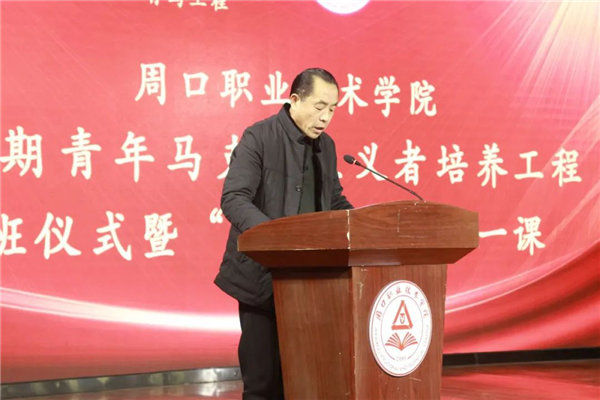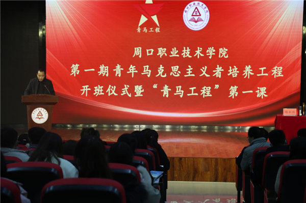 12月28日下午15:00。周口职业技术学院在开元校区艺术学院演播厅,举行第一期“青年马克思主义者培养工程”培训班开班仪式暨“青马工程”第一课。