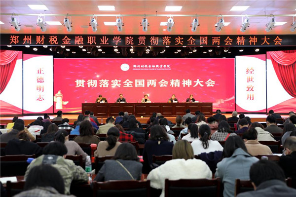 为扎实做好全国两会精神的学习贯彻工作,进一步加快推进郑州财税金融职业学院“双高建设”的步伐,3月17日下午,该校在西校区三楼报告厅召开会议,认真学习贯彻全国两会精神。