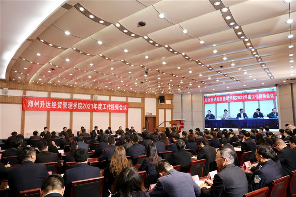 紫燕迎春龙湖畔,百花争艳升达园。4月1日下午,郑州升达经贸管理学院隆重召开2021年度工作视频会。这次会议采用线上线下、主分会场相结合的方式进行,由国际会议厅主会场和双创大讲堂等15个分会场组成。执行董事王新奇、党委书记雷霆、校长郭爱先等校领导及各处室主管、各院部院长(主任)、党总支书记、副院长、全体教职员工、学生代表参加会议。会议由校党委书记雷霆主持。