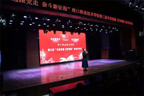 5月20日,为深入开展“四史”学习,引导广大学生重温革命历史,传承红色精神,坚定理想信念,树立正确的世界观、人生观、价值观,周口职业技术学院举办“永远跟党走 奋斗新征程”第三届“书香校园 芬芳周职”读书分享会。