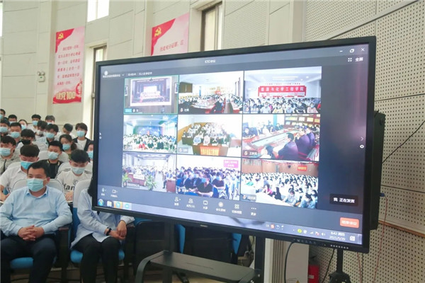 党课设线下主会场和15个线上分会场。主会场设在行政楼一楼报告厅。市政府秘书长谢传芳,市教育局局长高尚功,市委宣传部副部长、文明办主任李亚丽,市政府研究室主任侯殿收,校领导班子全体成员及各职能处室正科以上干部,教师代表,学生党员代表到场聆听学习。各教学院部、图书馆、电大工作部、附属中学设立线上分会场,千名职工、万名学生以收看实况直播的方式参加学习。