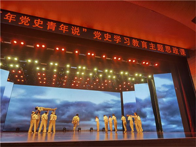 5月20日,省委高校工委、省教育厅、团省委、河南广播电视台在郑州联合举办“百年党史青年说”——百校青年大学生讲党史大赛汇报展演暨颁奖典礼,济源职业技术学院选送的舞蹈《忆·1923》荣获二等奖,济源职业技术学院荣获最佳组织奖,张哲、黄宁荣获优秀指导教师。《忆·1923》在全省颁奖典礼进行了展演和网络直播。