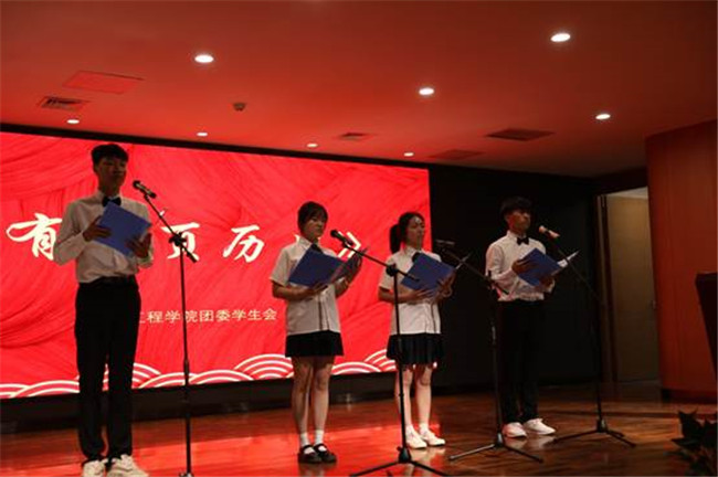 信工学院团委学生会带来了诗朗诵《有一页历史》,朗读者们深情朗诵,同学们共同聆听,为祖国母亲献上诚挚的祝福。建工学院团委学生会带来了歌曲串烧,将晚会推向了高潮,全场一起随音乐旋律摆动。信工学院团委学生会带来了话剧《英雄赵一曼》,使大家深入了解了中国第一代女党员赵一曼的英雄故事。