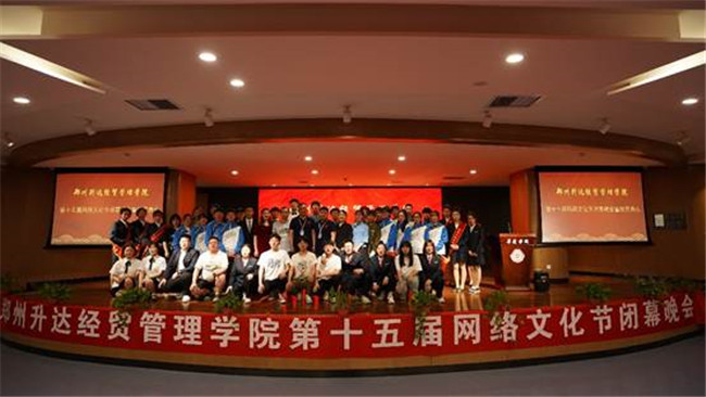 为庆祝中国共产党成立100周年,丰富同学们的课余文化生活,提升校园文化艺术氛围,2021年5月27日,由郑州升达经贸管理学院校团委主办,信息工程学院团委承办的第十五届网络文化艺术节闭幕晚会暨颁奖典礼在双创大讲堂圆满闭幕。信工学院党总支书记张现水,信工学院行政秘书兼团委书记王崇、团委常务副书记袁奉亚,信工学院辅导员代表赵征以及各学院代表参加了本次闭幕式。