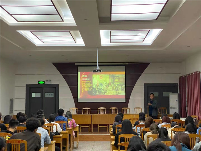 该校艺术设计系结合专业学习,别开生面以一张油画里的故事,向学生讲起党史的故事。“处处埋忠骨,岭岭皆丰碑,28年大别山红旗不倒,20万英雄儿女忠魂所埋,希望同学们了解革命先烈的故事之后能够由‘感动一阵子'升华为‘铭记一辈子'。油画专业老师王新胜结合老区脱贫攻坚和乡村振兴的故事,将大别山蕴藏的丰富精神文化向师生讲述。一张小小的油画,使师生党员接受了一次灵魂的洗礼,进一步增强的理想信念,提升了党性修养。