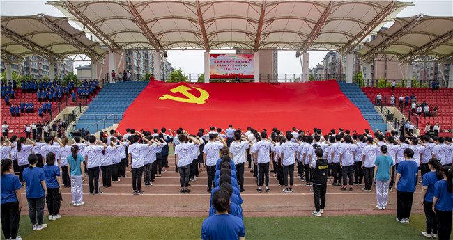 伴着《党旗颂》的红色旋律,一幅384平米的巨幅党旗在河南中医药大学学子的合力下徐徐展开,并缓缓移至主席台,现场师生热血沸腾、心潮澎湃。别荣海带领现场300余名师生党员,面对党旗,举起右手,重温入党誓词“我志愿加入中国共产党,拥护党的纲领,遵守党的章程,履行党员义务,执行党的决定,严守党的纪律,保守党的秘密,对党忠诚,积极工作,为共产主义奋斗终身,随时准备为党和人民牺牲一切,永不叛党。”誓言回荡在空中,誓词铭刻在心中,展现了新时代河中医人对党的无限忠诚,奋力创建一流中医药大学、推动中医药传承创新发展的信心和决心。