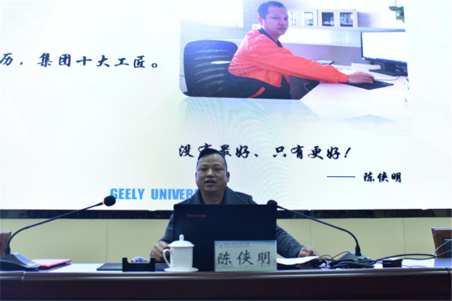 吉利汽车集团十大工匠陈侠明技能大师为学生做报告