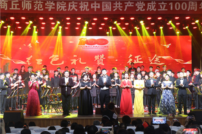 6月3日,商丘师范学院在睢阳校区大礼堂举办“红色礼赞 征途”庆祝中国共产党成立100周年交响管乐音乐会。校领导司林胜、陈向炜、朱伟、辛作义、李永春、郭文佳,全体处级领导干部及各学院师生代表近1000人共同聆听了音乐会。