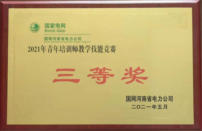 5月26日至28日,国网河南省电力公司在国网河南技培中心组织开展了2021年青年培训师教学技能竞赛,此次赛事共有公司26支代表队共51位参赛选手参赛,竞赛采取理论考试、课程开发和现场教学相结合的方式,内容涵盖电力行业企业培训师职业素养、语言表达、现代培训技术应用、课程开发、教学资源开发、组织教学、教学方法应用、知识类技能类授课、培训教学与管理研究方面的知识,经过激烈角逐,由电力工程学院李嫚、经济管理学院刘静老师组成的学校代表队荣获团体第四名(三等奖)的学校历史最好成绩。