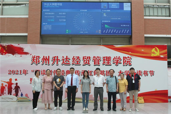6月3日下午,信阳学院校长助理高雅、图书馆馆长李虎、信息化建设与管理处副处长刘硕等一行来郑州升达经贸管理学院图书馆参观交流,该校副校长张其武、图书馆馆长晁国立及相关部门业务骨干热情接待来访客人,并与客人进行交流座谈。