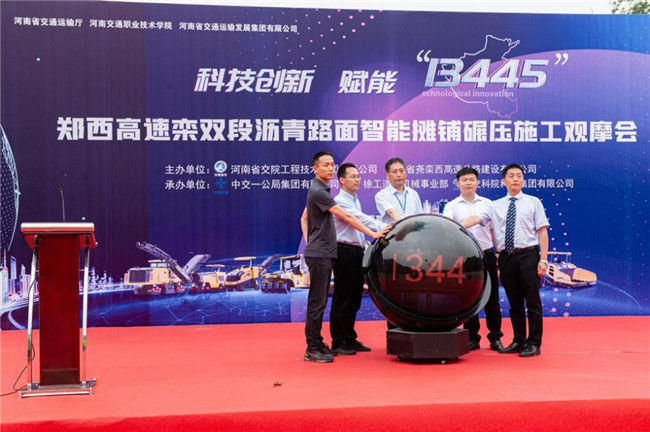 6月1日上午,由河南交通职业技术学院工程技术集团有限公司、河南省尧栾西高速公路建设有限公司主办,中交一公局集团有限公司、徐工道路机械事业部、交科院科技集团有限公司承办的郑西高速公路栾双段沥青路面无人智能摊铺碾压施工观摩会在项目施工现场圆满举行。