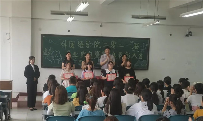 6月10日上午,外国语学院2021届毕业生毕业典礼在1620教室隆重举行。校党委委员、纪委书记、监察专员刘际平参加了典礼活动,并为省级、校级和院级优秀毕业生颁发了荣誉证书。 刘际平代表学校向顺利完成学业的2021届毕业生致以诚挚的祝贺和美好的祝愿,向所有为学生的成长、成才默默奉献的老师们、亲友们,致以崇高的敬意和衷心的感谢!作为临行嘱托,刘际平对全体毕业生提出了四点殷切希望:第一,希望同学们保持朝气,努力拼搏,用智慧回报国家,回报社会,回报父母;第二,希望同学们勇于实践,不断追求、进取,打造美好的未来;第三,希望同学们爱岗敬业,踏实工作,勤勤恳恳,砺练心志,在平凡的工作岗位上建功立业;第四,希望同学们继承中华民族的优良传统,发扬爱国主义精神,奋发图强,为中华强盛而努力。