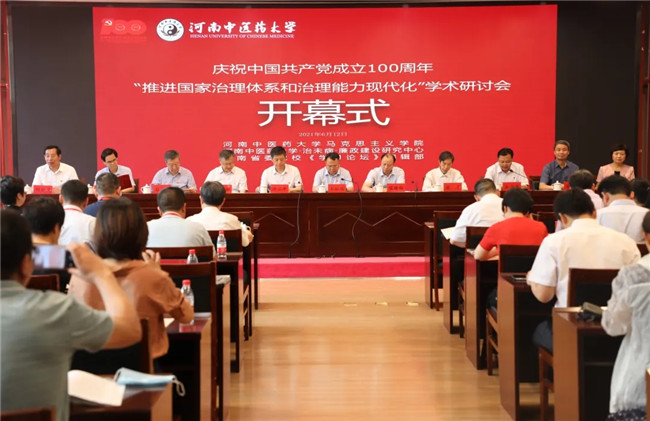 为庆祝中国共产党成立100周年,推进党史学习教育走深走实,2021年6月12日,由河南中医药大学马克思主义学院、河南中医药大学“治未病”廉政建设研究中心、河南省委党校《学习论坛》编辑部共同举办的“推进国家治理体系和治理能力现代化”学术研讨会在河南中医药大学顺利召开。来自中国人民大学、中共中央党校、浙江理工大学、湖南中医药大学、山西中医药大学等多所省外高校和省高院省检察院等司法部门代表、省内马克思主义学院师生代表、河南中医药大学马克思主义学院师生、校纪委监察专员办公室全体工作人员等百余人参加会议。