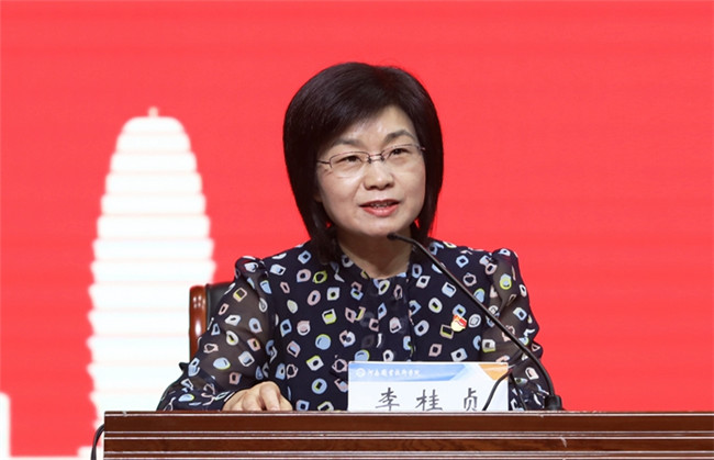 李桂贞代表学校致欢迎辞,对各兄弟院校参赛选手来校参赛表示欢迎,并对学校近年来建设发展情况及师德师风建设情况进行了介绍。她表示,学校将竭尽全力为大赛做好组织和服务工作。同时学校也将以此次竞赛为契机,深入推进教师分类培养改革,强化师德师风教育,引导广大教师以赤诚之心、奉献之心、仁爱之心投身教育事业。她希望,各位参赛选手要珍惜这次切磋技艺的机会,赛出成绩、赛出水平、赛出风格,并预祝本次演讲竞赛取得圆满成功。