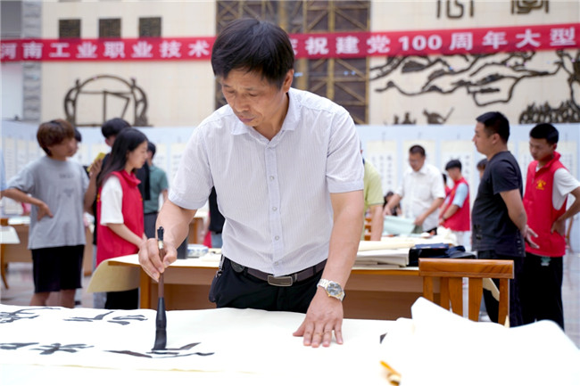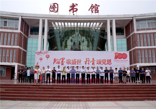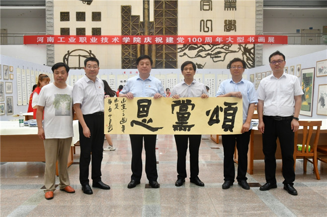 百年华诞,铸就辉煌;书香工院,翰墨飘香。为了隆重庆祝中国共产党成立100周年,6月16日,河南工业职业技术学院在学校图书馆广场,举办“翰墨歌盛世,丹青颂党恩”书画展。