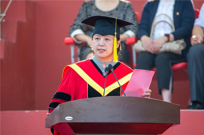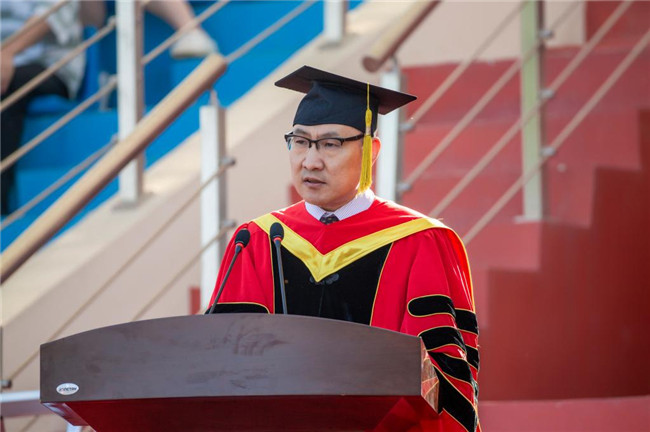 许二平在讲话中代表学校衷心祝贺同学们顺利完成学业,为全体毕业生送上了真挚的祝福和美好的祝愿,向大家为学校发展作出的努力和贡献表示感谢。他表示,过去的几年中,学校见证了同学们的成长,同学们也见证了学校的发展;学校走进了同学们的岁月,同学们也走进了学校的历史。大家在校园里认识了新同学、结识了新老师,收获了新才干,与学校同心同德,共同成长、共同进步,学校事业的每一步发展都包含着大家勇于开拓、敢于创新的努力和贡献。临别之际许二平对同学们寄予了殷切期望:一是要厚植家国情怀,培养高尚品格。立足新起点、开启新征程,志存高远,主动担当,与时代同行、与民族共进,把肩负的使命和责任转化为进步的动力和奋斗的激情。要学会以未来的眼光看现在的发展,站在全局的角度去判断取舍,在工作实践中不断精进自己的认知和阅历,将所学融入波澜壮阔的社会实践中,将情怀寄托于国家富强的理想信念中,承担民族社会之责任。二是要增强中医自信,肩负历史责任。党和政府高度重视中医药工作,中医药振兴发展迎来天时、地利、人和的大好时机。作为新时代的中医药人,同学们要在今后的工作中,进一步坚定中医自信,弘扬中医药文化,立足大医精诚,把个人理想、个人信念以及个人奋斗,自觉融入到实现中华民族伟大复兴中国梦的征程中,为推动中医药事业蓬勃发展、促进中医药传承精华、守正创新做出自己的贡献。三是要满怀仁爱之心,呵护人民健康。“没有全民健康,就没有全面小康”。人民身体健康是全面建成小康社会的重要内容。同学们要积极响应党中央的号召,坚持人民至上、生命至上,不断为增进人民健康作出新的贡献。要以广大优秀校友为榜样,满怀仁爱之心,并将之转化为勇敢与仁义之举,努力成为一个担当尽责的人、一个勤勉努力的人、一个志向远大的人、一个敬业奉献的人,将自己的聪慧和才智贡献社会,不负母校之期待,无愧历史之重托,为实现“两个一百年”奋斗目标、实现中华民族伟大复兴的中国梦贡献出自己的智慧和力量。