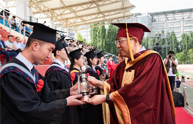 别荣海代表学校,向优秀毕业生代表赠送了一份特殊的礼物——一盏闪着明亮灯光的现代化马灯。古代中医弟子学成出师之时,老师要向学生赠予一盏马灯,提醒学子行医之路要风雨无阻,不分昼夜。这份珍贵的礼物还蕴含着母校对毕业生们“传承精华守正创新”的深切希冀,为即将离开母校的同学们点亮了理想之灯,照亮了前行之路。