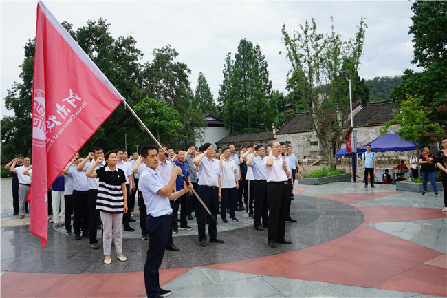 在罗山县何家冲,大家实地参观中国工农红军第二十五军长征纪念馆,红二十五军长征出发集结地大银杏树、红军医院旧址等红色革命遗迹,通过瞻仰革命历史图片、文献资料和革命文物,详细了解红二十五军的发展历程,重温红二十五军浴血奋战、可歌可泣的英雄事迹,深刻感悟“坚守信念、胸怀全局、团结一心、勇当前锋”的大别山精神。在何家冲政治文化广场,穆瑞杰带领与会党员干部面向党旗重温入党誓词,牢记初心使命,永葆忠诚本色。