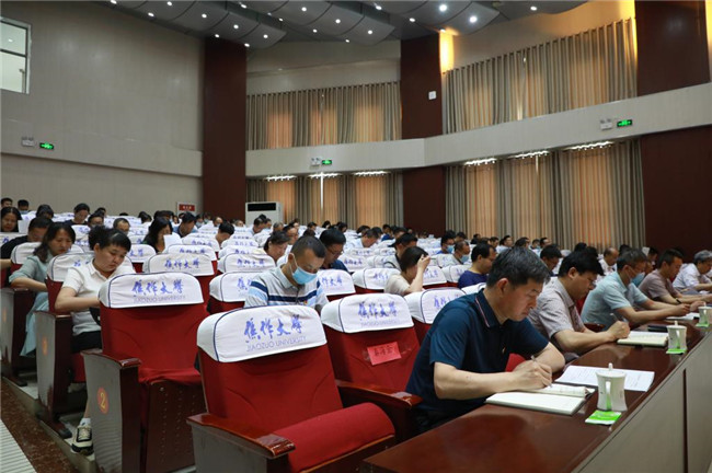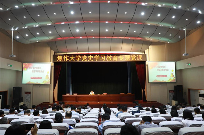 本网讯 为推动学校党史学习教育深入开展,按照市委党史学习教育领导小组安排和校党委统一部署,6月10日下午,焦作大学校党委书记魏曰高在南校区报告厅以“学习党史强信念坚定不移跟党走”为题,为干部师生讲授专题党课。土木建筑工程学院、党政办公室党支部全体党员,全校正科级以上党员领导干部、部分学生党员代表参会。市委党史学习教育工作第六巡回指导组副组长、市引沁局党委委员、纪委书记许洪州和市审计局办公室三级主任科员蒋小宇莅临旁听。党课由校党委副书记、工会主席符德学主持。