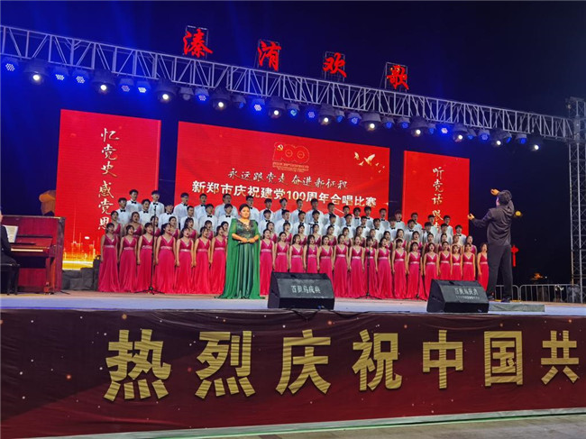6月15日晚,新郑市庆祝建党100周年合唱比赛“永远跟党走 奋进新征程”在炎黄广场正式拉开序幕。郑州升达经贸管理学院艺术学院合唱团在刘营光、安冉、艾赛赛、孙凤娟四位教师带领下前往新郑市炎黄广场参加比赛。