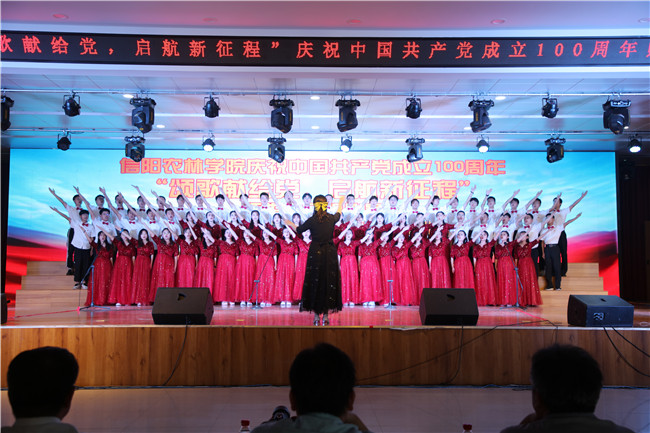 6月22日,在党的百年华诞来临之际,信阳农林学院举办以“颂歌献给党,启航新征程”为主题的庆祝中国共产党成立100周年师生合唱比赛,千余名师生齐聚大学生活动中心,放歌百年党史,礼赞辉煌历程。“没有共产党就没有新中国……”,一首首熟悉的经典曲调,热情的旋律,飘扬在校园中。党委书记余作斌、校长邢勇、在校的班子成员和师生代表共同参加活动。
