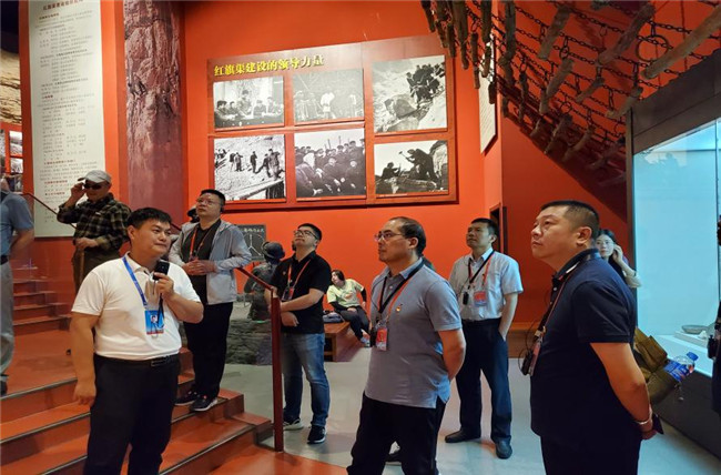 19日上午,大家共同参观了红旗渠纪念馆。纪念馆共分“千年旱魔”“红旗引领”“太行丰碑”“山河巨变”“精神永恒”五部分。在红旗渠纪念馆,党员们认真聆听讲解员的动情讲解,深刻体会在粮食紧张、物资短缺、设备技术落实后的条件下,杨贵书记带领林县人民“横下一条心,誓不引漳入林不罢休”的坚强决心;深刻体会林县引漳入林总指挥部发布“引漳入林动员令”时林县人民“重新安排林县河山”的凌云壮志;深刻体会以杨贵为代表的中国共产党人克服重重困难,为群众谋幸福的为民情怀;共同感受杨贵书记以长远的眼光和对林县平顺两县子孙后代负责的态度、与平顺县签定红旗渠使用协议书,所体现出来的责任感。通过一幅幅珍贵的历史图片,一件件沧桑的历史文物,一个个感人的修渠英模事迹,大家切身体会到了红旗渠工程所造就的“自力更生、艰苦创业、团结协作、无私奉献”红旗渠精神的丰富内涵。参观过程中,大家被当年红旗渠修建过程中无数党员冲锋在前,勇于担当,一心为民,无私奉献的事迹所震憾。