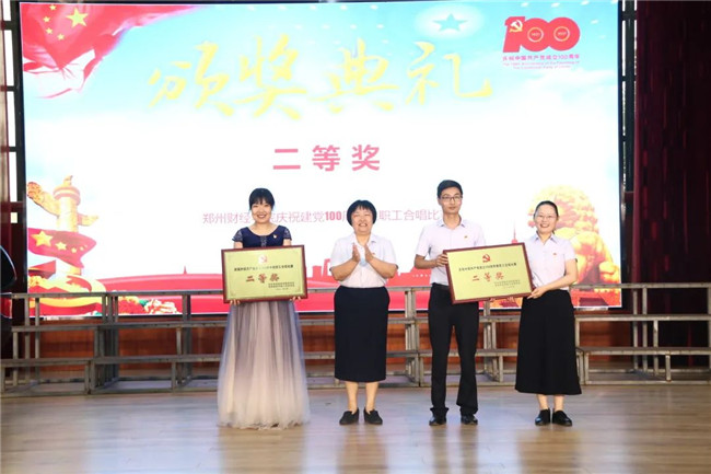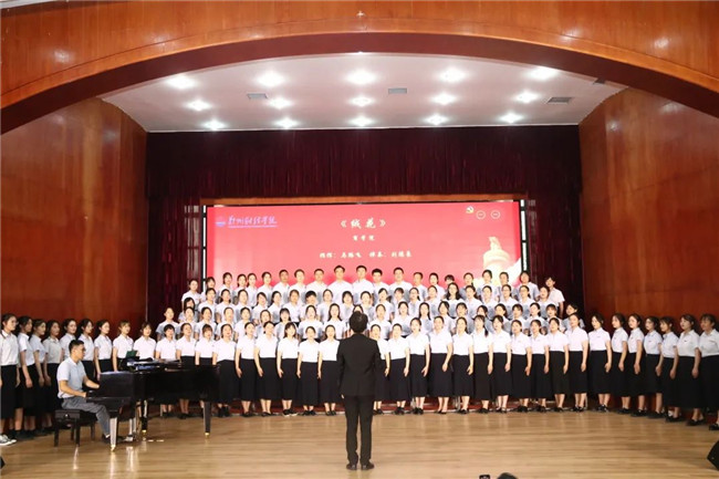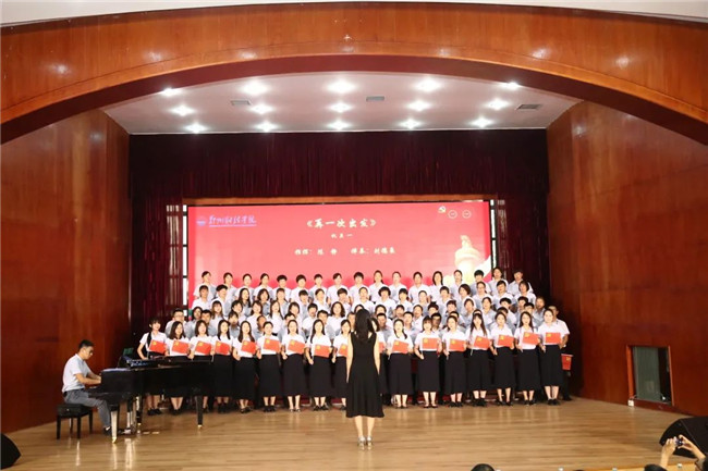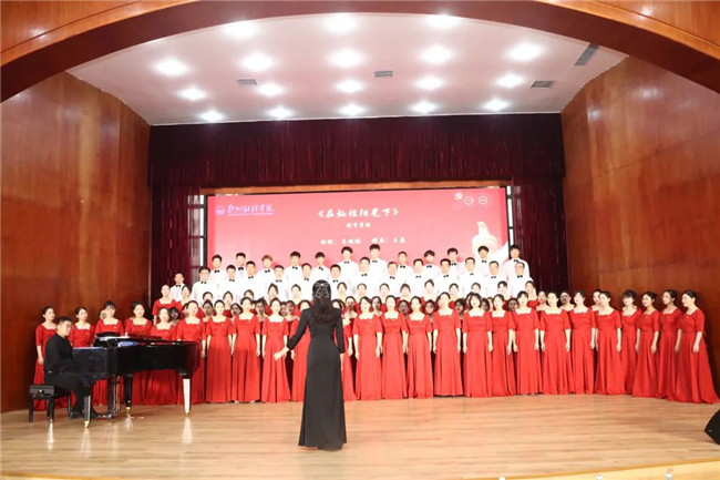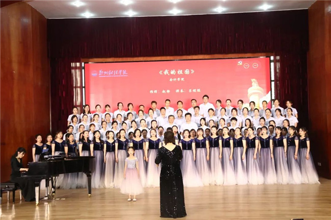 为庆祝中国共产党成立100周年,讴歌中国共产党的百年光辉历程,激励教职工不忘初心,牢记使命,传承红色基因,学习党的历史,落实立德树人根本任务,增强教职工凝聚力、向心力,推进学校本科教学合格评估工作有序进行,在校党委和校工会的共同组织下,6月25日下午,郑州财经学院在图书馆学术报告厅举办了郑州财经学院“奋斗百年路 永远跟党走”庆祝建党100周年暨迎七一教职工合唱比赛。