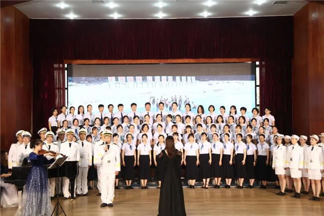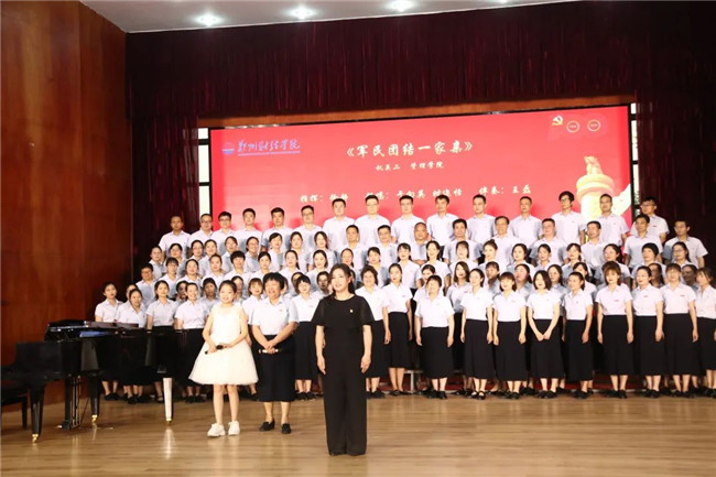 机关二和管理学院合唱团带来的歌曲《军民团结一家亲》,由校长于向英和时迩恬小朋友领唱,歌曲回顾了党的百年光辉历程中,“军爱民,民拥军”的光荣传统,勾勒了一幅幅温暖的军民团结一家亲的和谐画面。