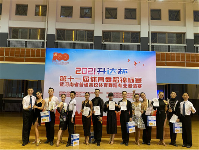 出彩升达,庆党100年。在这举国欢庆的日子,为祝福祖国同时也是为丰富学生的校园生活,陶冶学生情操,提高学生的综合素质和能力,郑州升达经贸管理学院于6月24日,在万兴体育馆三楼篮球厅举办2021年“升达杯”第十一届体育舞蹈锦标赛暨河南省普通高校体育舞蹈专业邀请赛。本次比赛由郑州升达经贸管理学院主办、体育学院承办,并邀请河南省师范大学、郑州大学体育学院、黄河科技学院、郑州工商学院、河南工程学院、郑州市第74中学、郑州市第17中学等学校前来参赛。