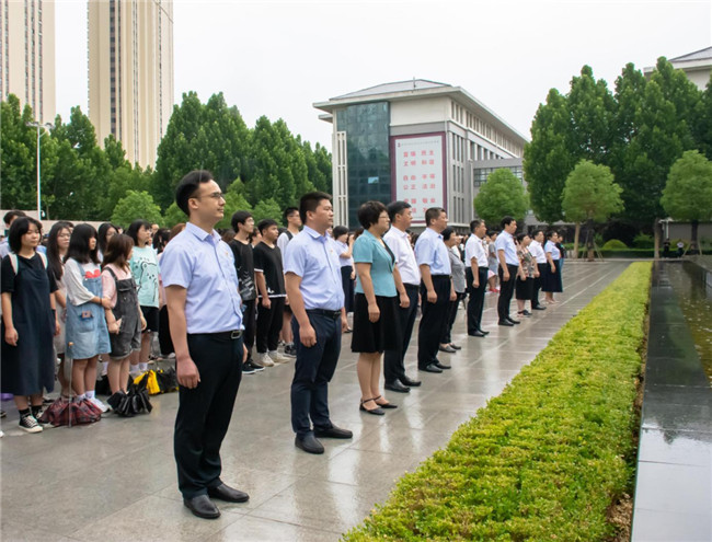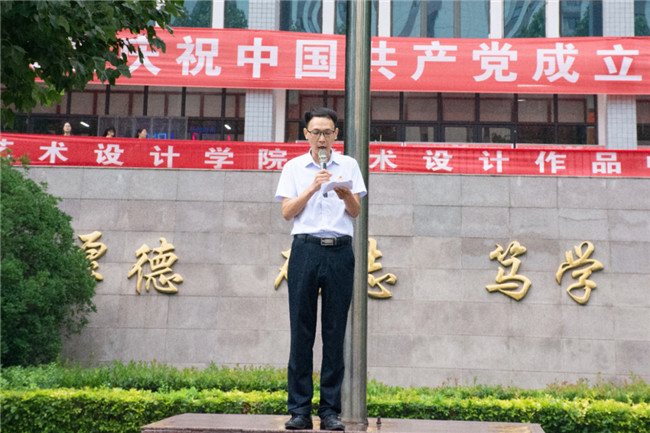 为庆祝中国共产党成立100周年,讴歌中国共产党的百年奋斗历程,进一步增强郑州财经学院青年学生的历史责任感、使命感和荣誉感,6月29日早上,在蒙蒙细雨中,郑州财经学院在图书馆前广场隆重举行“迎七一”升旗仪式暨“传承红色基因 迎接建党百年”主题团日活动。校领导班子全体成员出席活动,党委职能部门负责人、二级学院党总支书记、副书记、团总支书记及学生代表参加活动。本次活动由校团委书记周二涛主持。