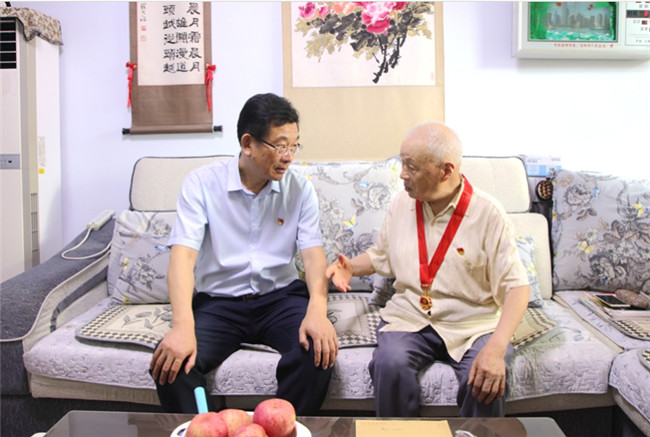 为庆祝中国共产党成立100周年,6月28日-30日,党委书记余作斌、党委副书记黄松、副校长赵聘分别前往信阳农林学院党龄满50年的部分老党员家中走访慰问,并为他们颁发“光荣在党50年”纪念章。党委委员、组织部长陈廷国以及相关部门负责同志参加了走访慰问。