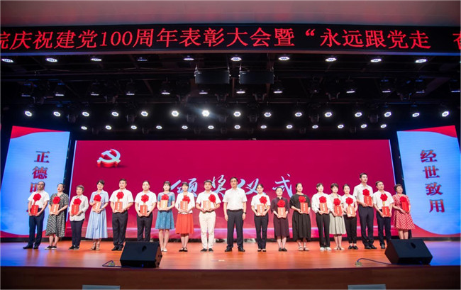 大会在庄严的国歌声中拉开序幕,院长程慎主持表彰大会,党委书记王霄鹂致辞。王书记讲到,为庆祝中国共产党诞辰100周年,大家欢聚一堂,共同回顾历史,重温入党誓词,表彰优秀党员和先进基层党组织是纯化党员思想,厚植爱党、爱国情怀的重要举措。希望全体党员同志以优秀代表为榜样,严格要求自己,不忘初心使命,立党为公、执政为民、爱岗敬业、担当作为、全心全意为人民服务,共同铸就中华民族的宏伟篇章。