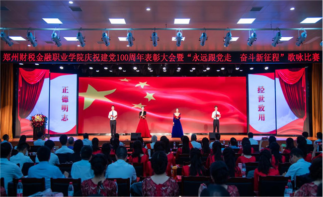 百年征程波澜壮阔,百年初心历久弥坚。七一前夕,郑州财税金融职业学院举行庆祝建党100周年表彰大会暨“永远跟党走 奋斗新征程”歌咏比赛,用歌声礼赞建党百年,讴歌中国共产党百年来波澜壮阔的历史进程和伟大成就。党委班子成员王霄鹂、程慎、来栋梁、牛宝毅、郭建军、施长春以及全体教职工参加活动。