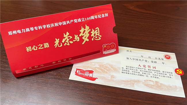 作为庆祝伟大中国共产党成立100周年的特别环节,学校为每一名党员设计制作了主题为“初心之路——光荣与梦想”的共产党员纪念封,旨在通过回顾初心使命,把苦难辉煌的过去、日新月异的现在、光明宏大的未来贯通起来,不断重温共产党人的初心和使命,更加坚定对马克思主义的信仰,对社会主义、共产主义的信念,对实现中华民族伟大复兴中国梦的信心。