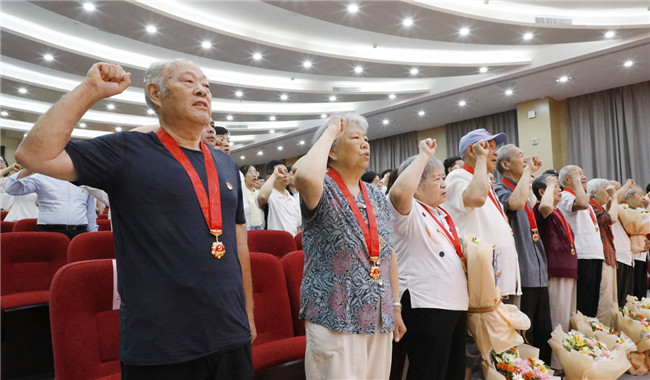 大会开始前,学校领导还为满50年党龄的老党员同志佩戴了“光荣在党50年”纪念章,并向他们致以美好祝福,感谢他们为教育事业、立德树人所做出的贡献。(魏豪)