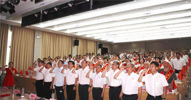 会议中,全体班子成员带领全院教职工党员重温入党誓词,全体党员面向党旗,紧握右拳,宣誓声铿锵有力,充满激情,入党誓词字字千钧,铮铮誓言昭示共产党人的使命和担当。