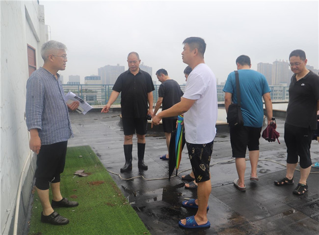 检查组一行分别来到教学楼及各实训场馆,对电气设备、排水通道、楼道伸缩缝、校园湖泊等处进行了深入、细致的检查,重点对建筑整体防水、内部防渗、实训室设备、地下管线等安全隐患进行了全面排查。