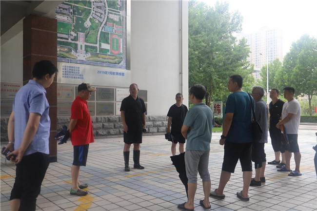 7月20日晚,开封迎来入汛以来最强降水。21日上午,按照黄河水利职业技术学院党委安排,校党委副书记、工会主席杨士恒,纪委书记朱焕立带领党政办、党委宣传部、学生处、保卫处、教务处、基本建设办公室、后勤管理服务中心等部门全面检查雨后受损情况及安全隐患,进一步部署校园防汛工作,保障校园安全。