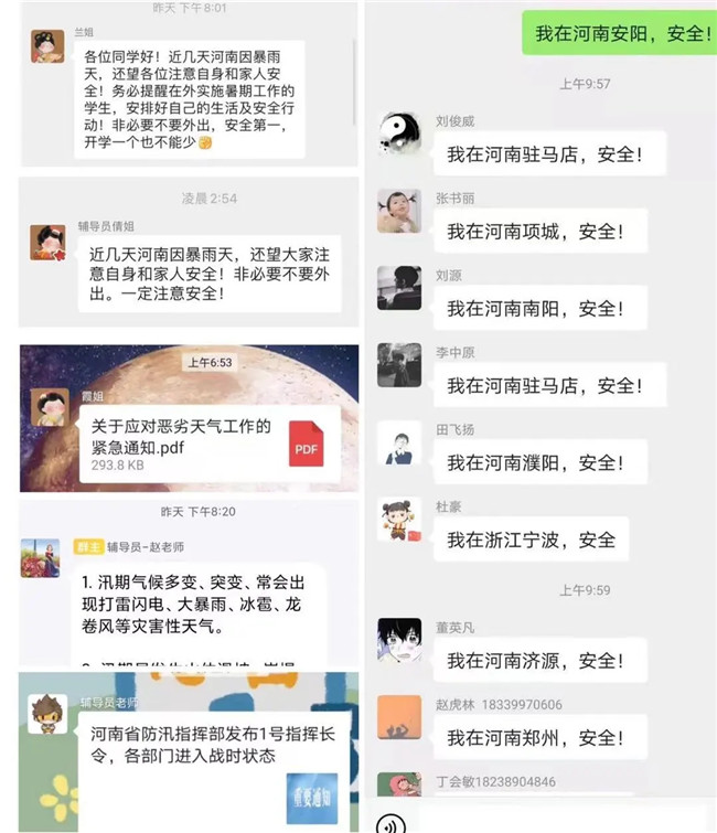 此次降雨范围广,全省各地不同程度遭遇极端强降雨。为提高师生安全防范意识,学校各部门(单位)第一时间通过微博、微信、短视频等平台,加强对广大师生员工的宣传教育,帮助师生充分认识极端恶劣天气造成的危害,认真做好防大汛的思想准备,谨慎出行、积极应对,认真做好个人防护。针对分布在省内外的5000余名实习学生,河南交院第一时间组织实习指导教师,克服通讯不畅困难,进行全面的联系摸排,迅速确定学生位置状态、加强安全防护教育,确保实习学生人身安全。